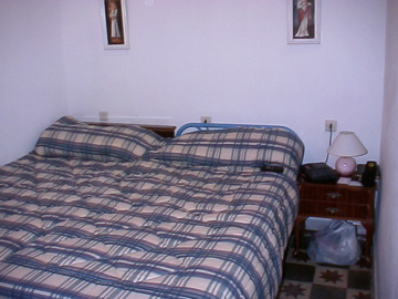 Our bedroom. The Spanish seem to prefer separate beds for couples. We have pushed the beds together to make it more "American" style.