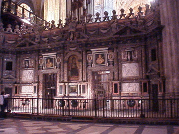 This wall separates an elevated seating area within the cathedral.